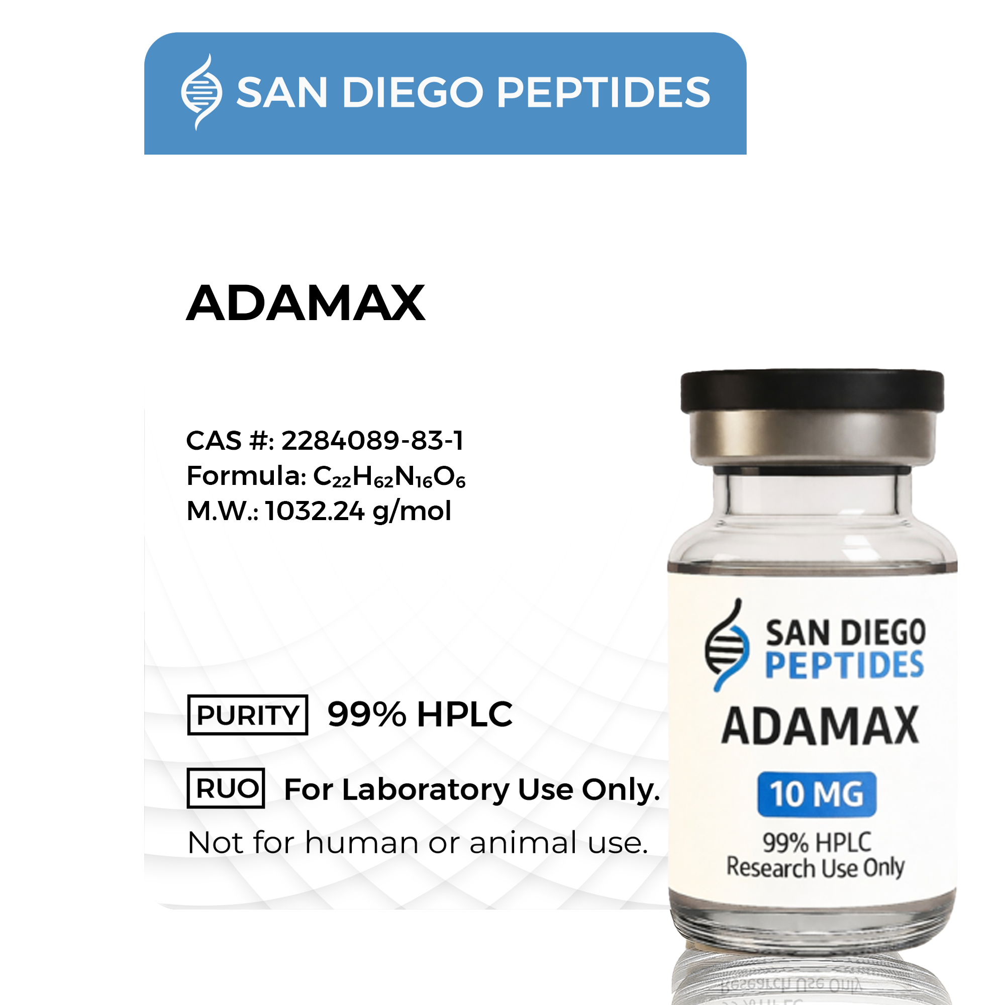 ADAMAX is supplied in purified peptide form and undergoes analytical verification, including purity and identity testing, to confirm composition consistency suitable for laboratory research use.