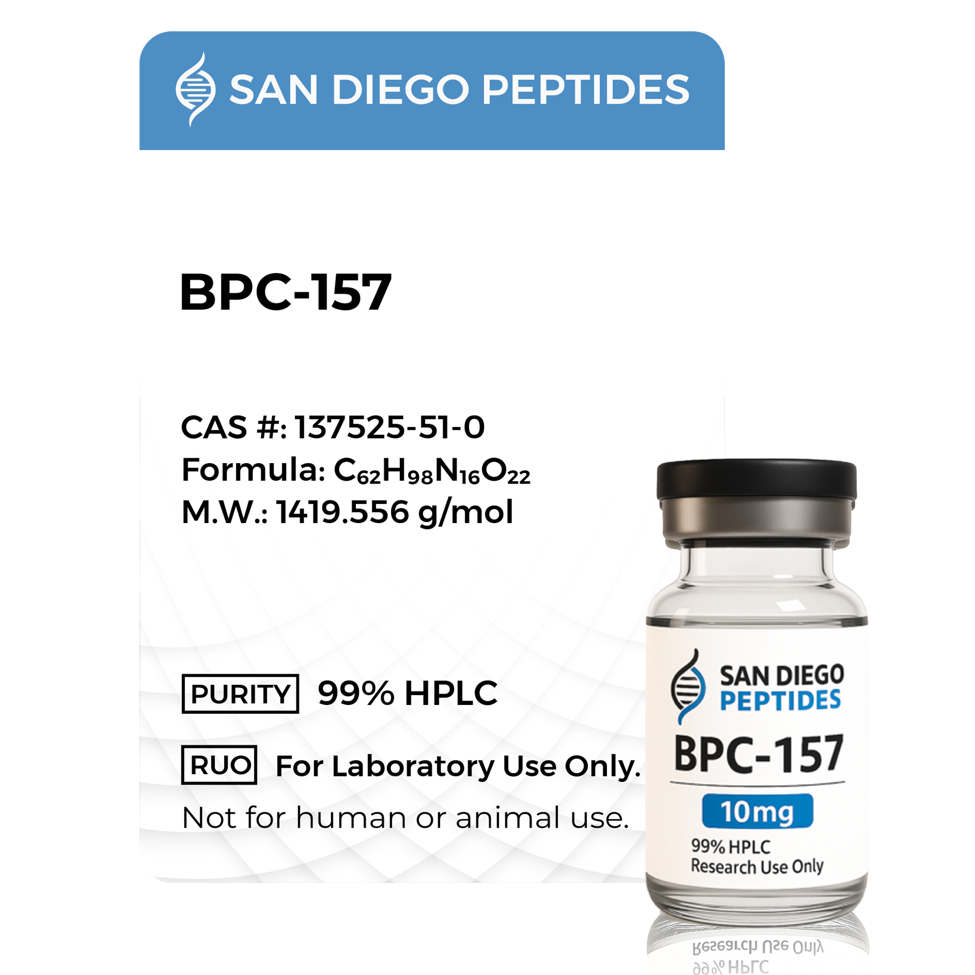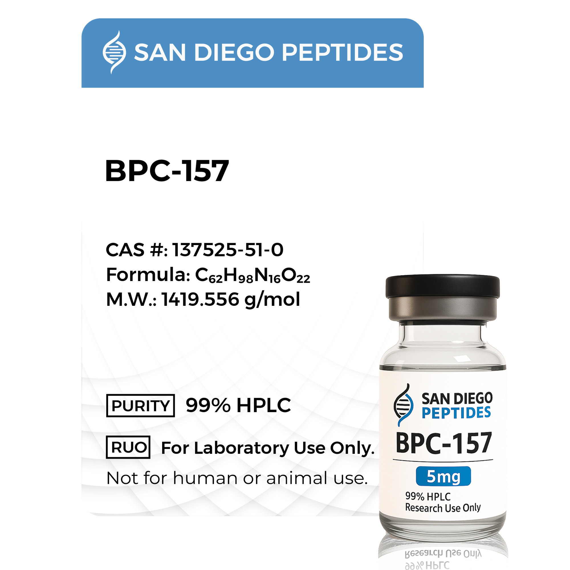 BPC-157 is a synthetic research peptide derived from a gastric protein fragment and widely studied in laboratory research focused on tissue-related signaling and cellular communication pathways. It serves as a research tool for examining peptide-mediated regulatory mechanisms.