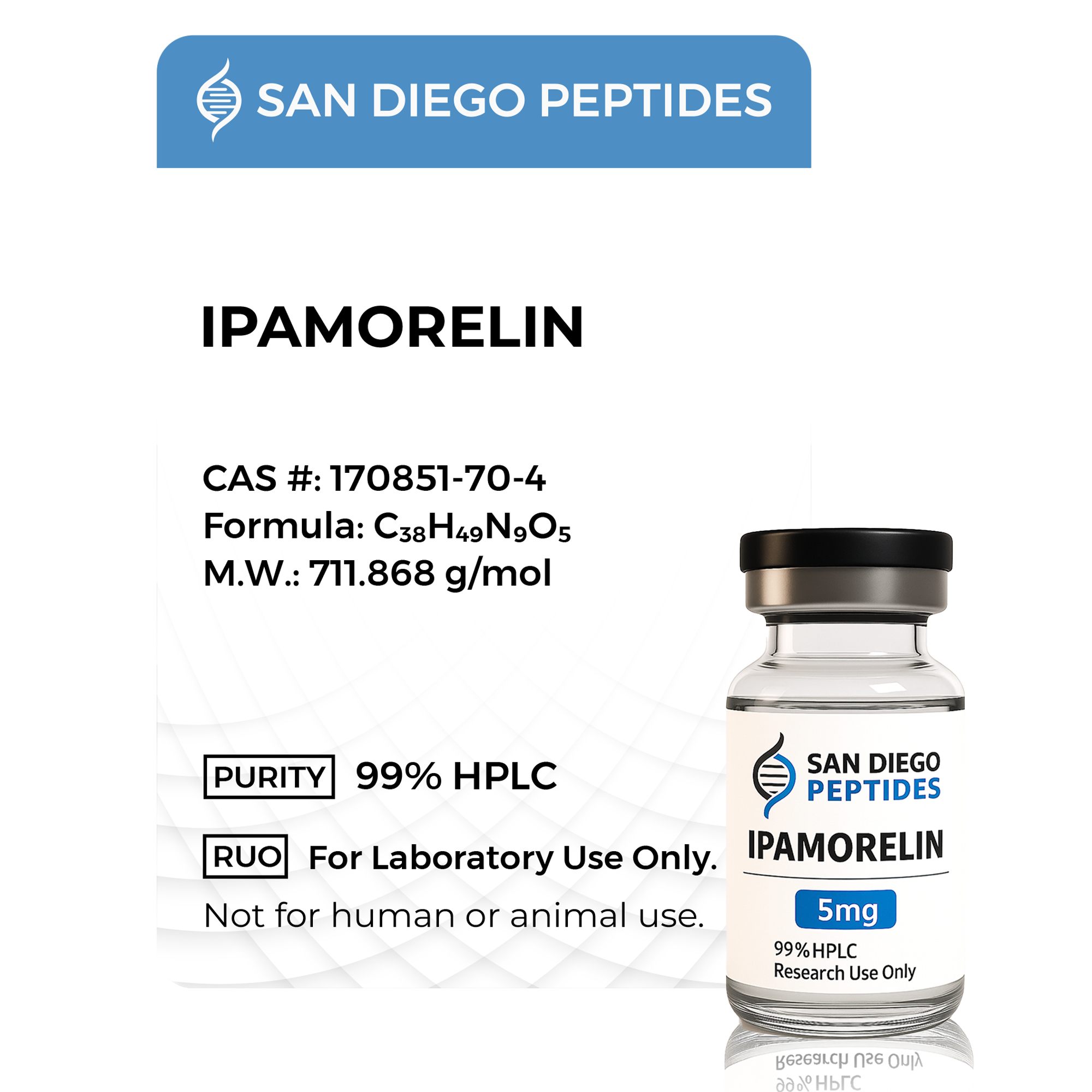 Ipamorelin is a synthetic peptide studied in laboratory research focused on ghrelin receptor activation and growth hormone signaling pathways. It serves as a research tool for examining selective receptor-mediated endocrine mechanisms.